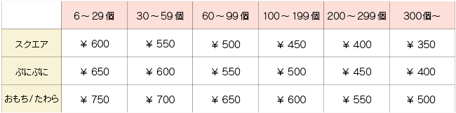 | 30個まで | 50個まで | 100個まで | 200個まで | 300個まで |